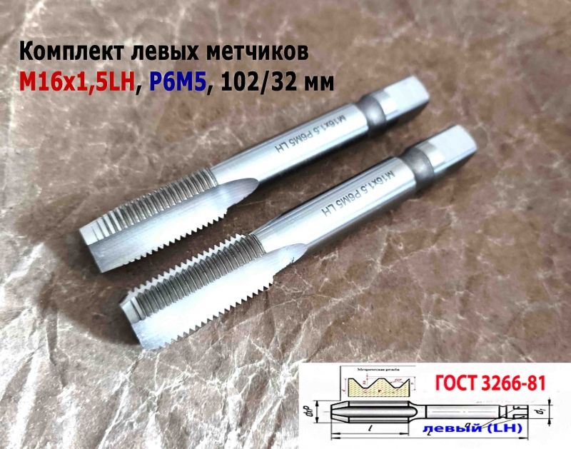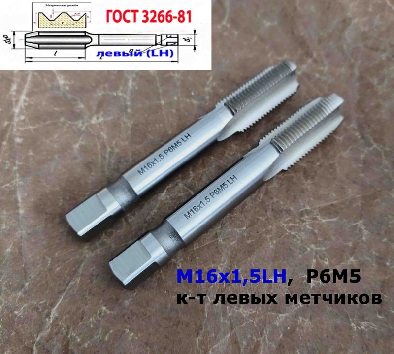 Есть в наличии метчики с левой резьбой (штучные и комплектные).