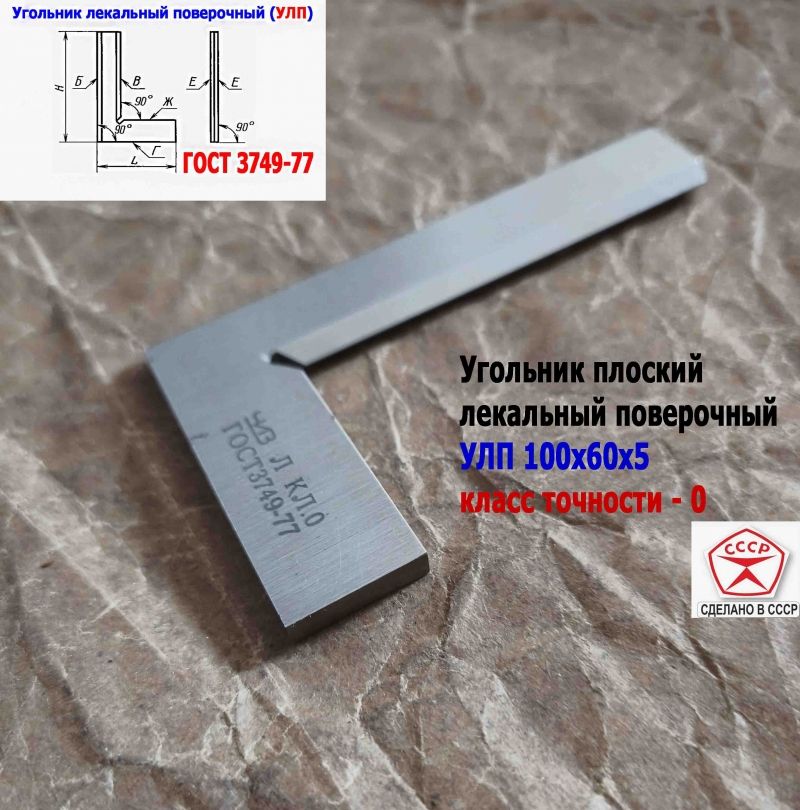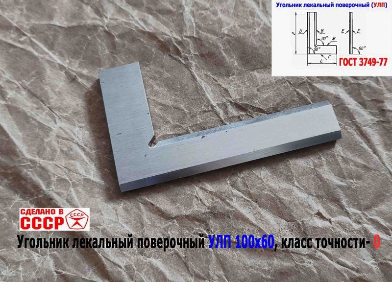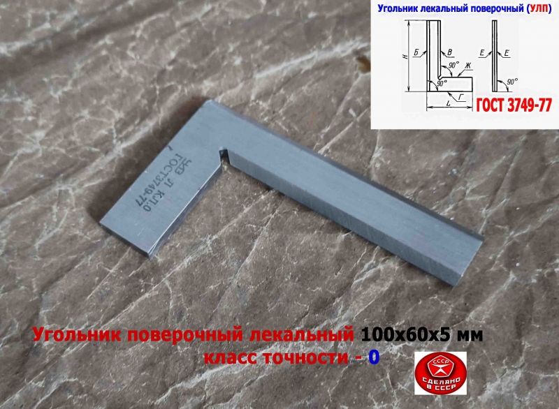 Угольник поверочный лекальный УЛП 100х60, 0 класс точности, угол 90 гр, ГОСТ 3749-77, ЧИЗ, СССР.