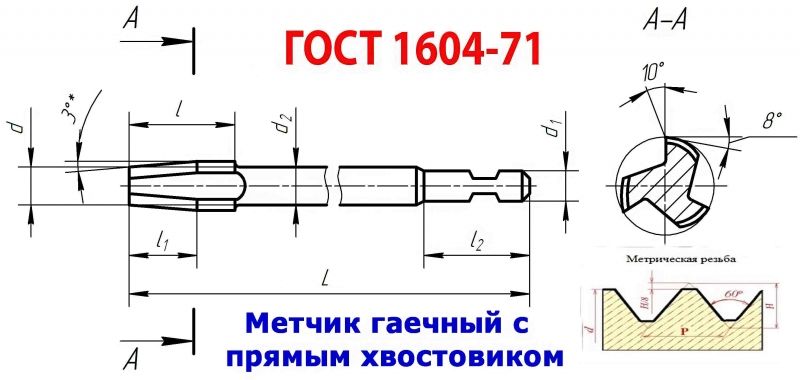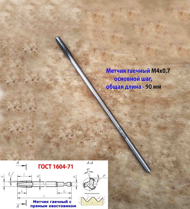 . Метчик гаечный длинный (L-90 мм) с прямым хвостовиком, имеющий рабочую часть изготовленную из быстрорежущей стали Р6М5, предназначен для нарезания гаек с метрической резьбой по ГОСТ 24705-81 станках-автоматах с непрерывным циклом.